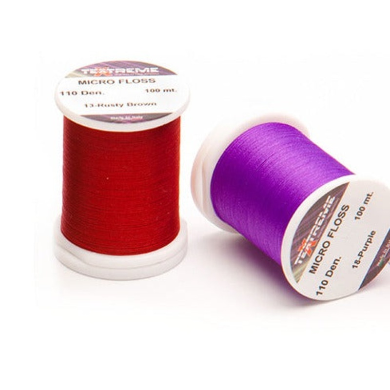 Textreme Micro Floss is a semi-textured thread of good strength thats suitable for tying small flies. Can be used for closing the flies (heads) or tying collars between the thorax and a bead head.110 Denier100 meters spooled