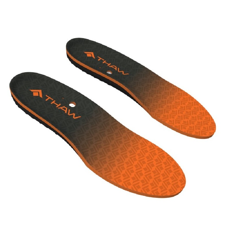 Thaw Rechargeable Heated Insoles are Bluetooth-enabled heated insoles that provide app-controlled warming for your feet. They are fully adjustable to keep you completely comfortable… no matter what temperature you select. In addition to temperature control, the THAW app also monitors battery life, streams weather forecasts and allows you to share devices with friends. Insoles are IPX4 rated for sweat, moisture and water- resistance against spraying or splashing water. However, they are not waterproof and should not be submersed in water or worn inside of fishing or wading boots that are designed to be worn in the water. Instead, the insoles can be worn inside of boot-foot waders and stocking-foot fishing waders.