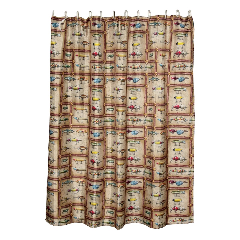 The Rivers Edge Products fishing lire shower curtain is the perfect touch for any fisherman’s bathroom. Antique Lure licensed art by JQ Outdoors. Features; Polyester construction 70″ x 72″ 12 plastic rings included