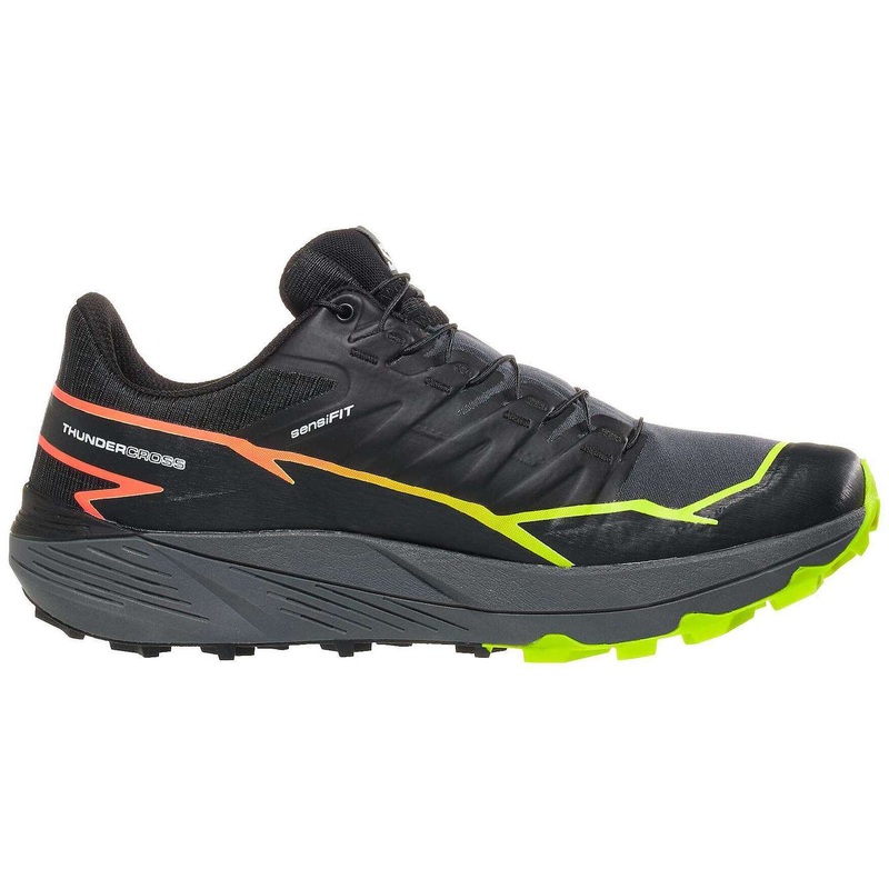 Salomon's men's Thundercross is a trail shoe for a dynamic, cushioned ride with superior grip and foothold. Equipped with aggressive 5mm lugs to tackle any terrain, no matter how tricky, technical, or just downright nasty. Developed in the French Alps, tri