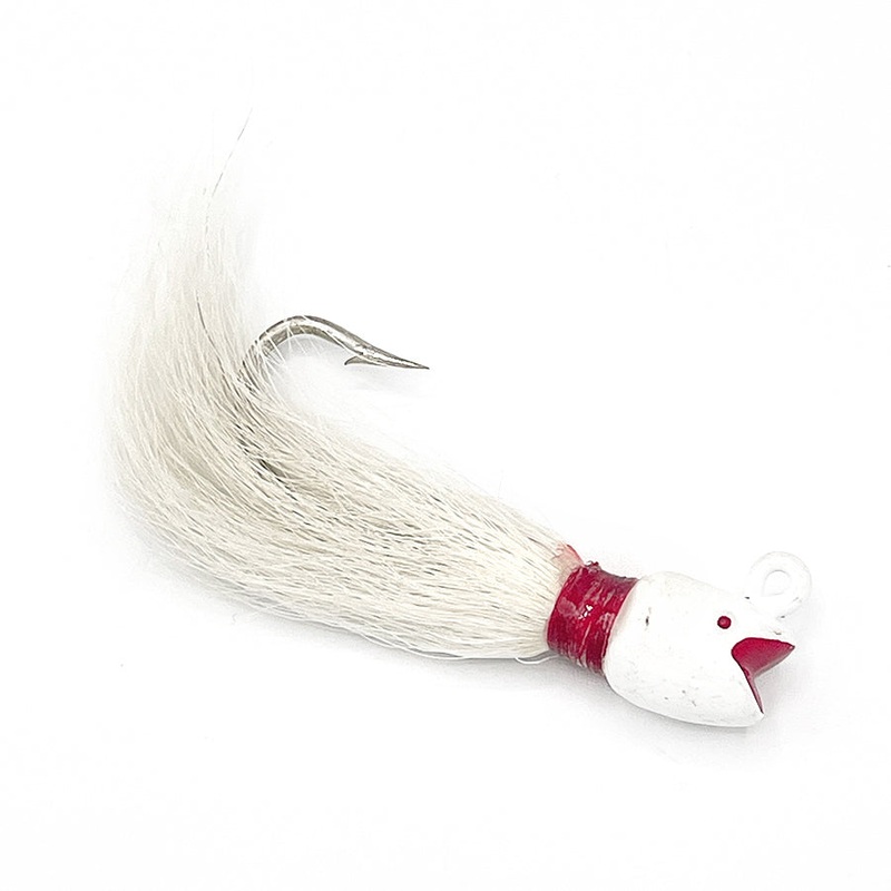 Tide Rite BM Big Mouth Bucktail Jigs feature an “open wide” design that creates a side-to-side gliding action, imitating the swimming motion of a bait fish. These jigs, often referred to as Hot Lip Jig Heads, boast a basic bullet style with an added open mouth design.
