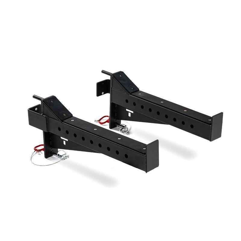The X-3 Series Spotter Arms from Titan Fitness are designed specifically for the X-3 Series Power Racks to provide extra security when lifting weights alone. Constructed from heavy-duty 11-gauge steel, these Spotter Arms will hold a weight capacity of up to 1,500-pounds. Featuring fully lined UHMW plastic liners and a durable powder-coated finish to protect your safety catches and barbell from damage. Additionally, the arms are easy to adjust up and down your X-3 Series rack with quick pin adaptors. These durable Spotter Arms are an absolute must-have for anyone who prefers to do hard training alone.