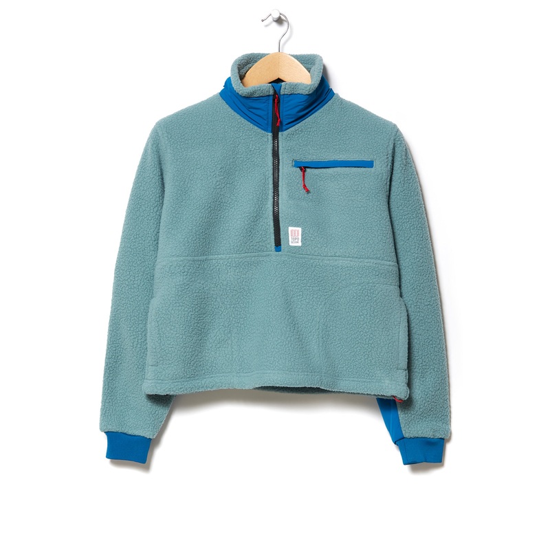 Topo Designs Women’s Mountain Fleece Pullover – Slate Blue / Light Mint