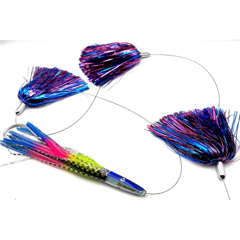The Wahoo Chain is a very effective tool when targeting Wahoo. Three of our durable and flashy Steel Heads being chased by our very productive TMK, all rigged on 265lb SS Cable and a single Tormenter 8/0 Stainless Steel Double Strength Hook. Comes in our 5