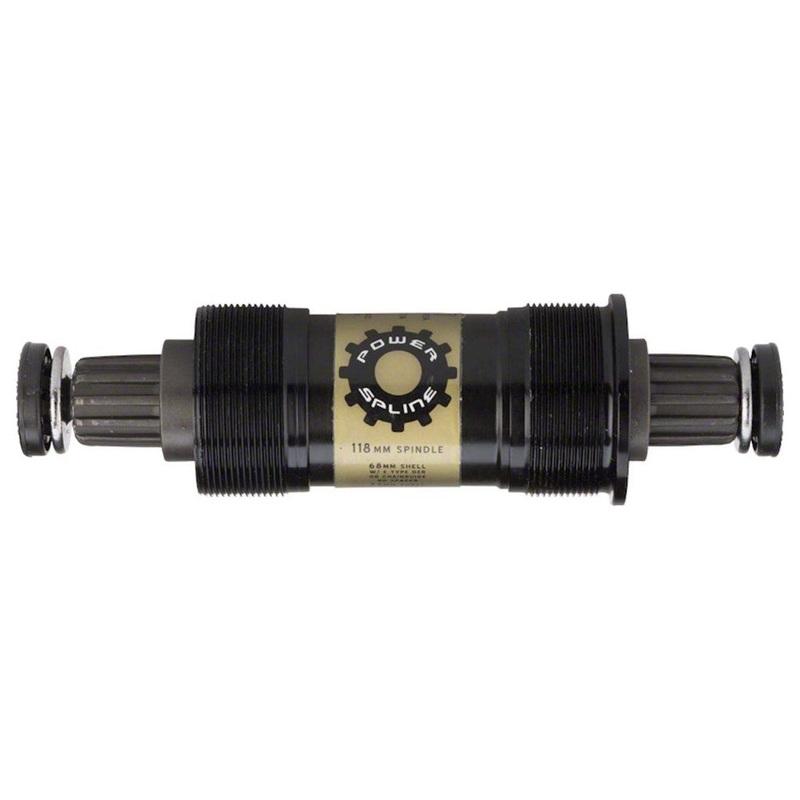 Truvativ PowerSpline Chromoly Bottom BracketFeaturesPowerSpline (PS): heat-treated chromoly spline-taper spindle with M8 (crank mount) thread bore and CNC machined alloy cups/spacer-shell: (325g)Sealed cartridge bearings with single-insert stop (chain line
