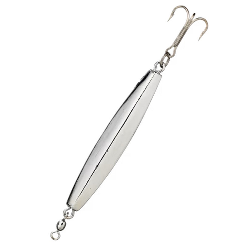 Sleek and deadly, the Tsunami Diamond Jig excels in a wide range of saltwater applications. Whether you’re casting, trolling, or vertical jigging, this jig’s classic hydrodynamic design and durable triple-chrome plating waste no time in putting you in the zone and getting the attention of the area’s predators. Extra-quick and extra-flashy; ideal at any depth, from the surface to the bottom beyond the nearshore reefs. Equipped with a strong Mustad Duratin treble hook.
