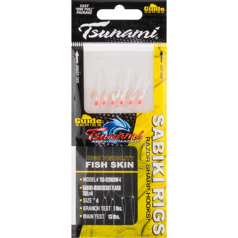 Tsunami Guide Series Flash Tail Sabiki Rigs are the ultimate tool for catching bait in both inshore and offshore waters! Nothing catches big fish like live bait, and these sabiki rigs are equipped with six razor sharp dressed hooks to catch baitfish like h