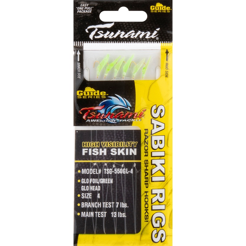 Tsunami Guide Series Sabiki Rigs – Glow Foil/Green Glow Head TSG-550GL