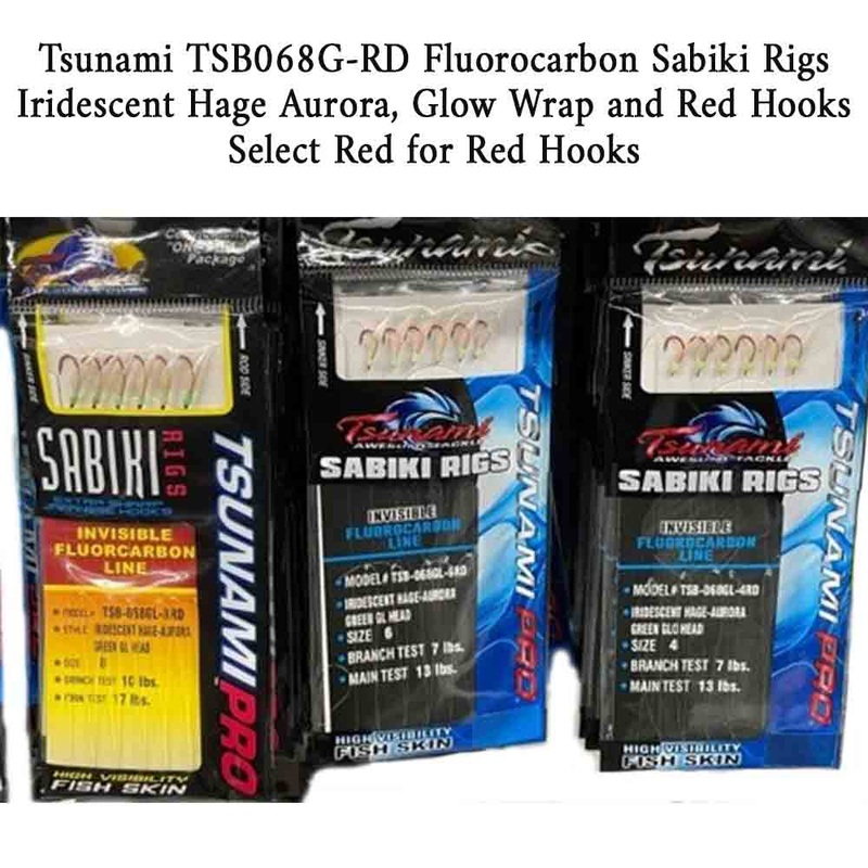 Tsunami TSB068GL Fluorocarbon Glow Iridescent Hage Aurora Sabiki Rig Red Hooks