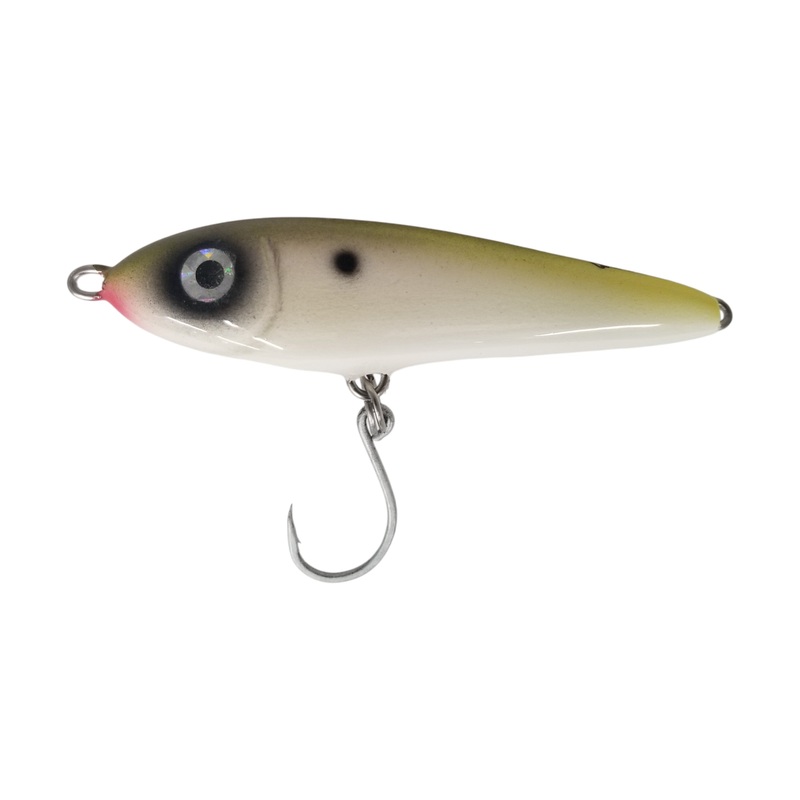 The Alan's Custom Lures 1 oz. Twitch/Glide Bait is a 4" full resin through wired bait that is the most versatile plug in the bag. This is a slow sinking lure that can be used in many ways. Twitch it back for an erratic action or steady retrieve it back to