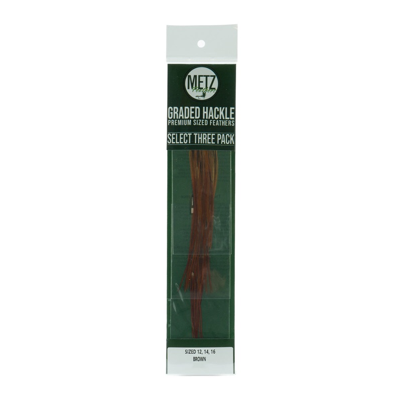 Our Select Feathers, sourced from the cape or neck of a rooster, are the result of decades of meticulous genetic breeding, making Metz feathers highly coveted for their exceptional buoyancy. When palmered, the stiff micro barbs ensure that flies stay afloat on the waters surface. These feathers are graded and sized and available in a range of sizes and colors to match various hatches.