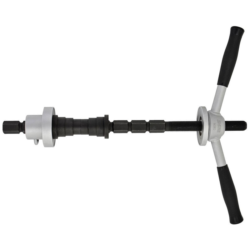 This tool accurately presses headset cups 1, 1-1/8, 1-1/4 , and 1-1/2 into head tubes. In addition, it has a longer spindle for BMX headsets with larger tubing. This precision-made tool enables work without damage.Material: premium flex plus carbon steel.T