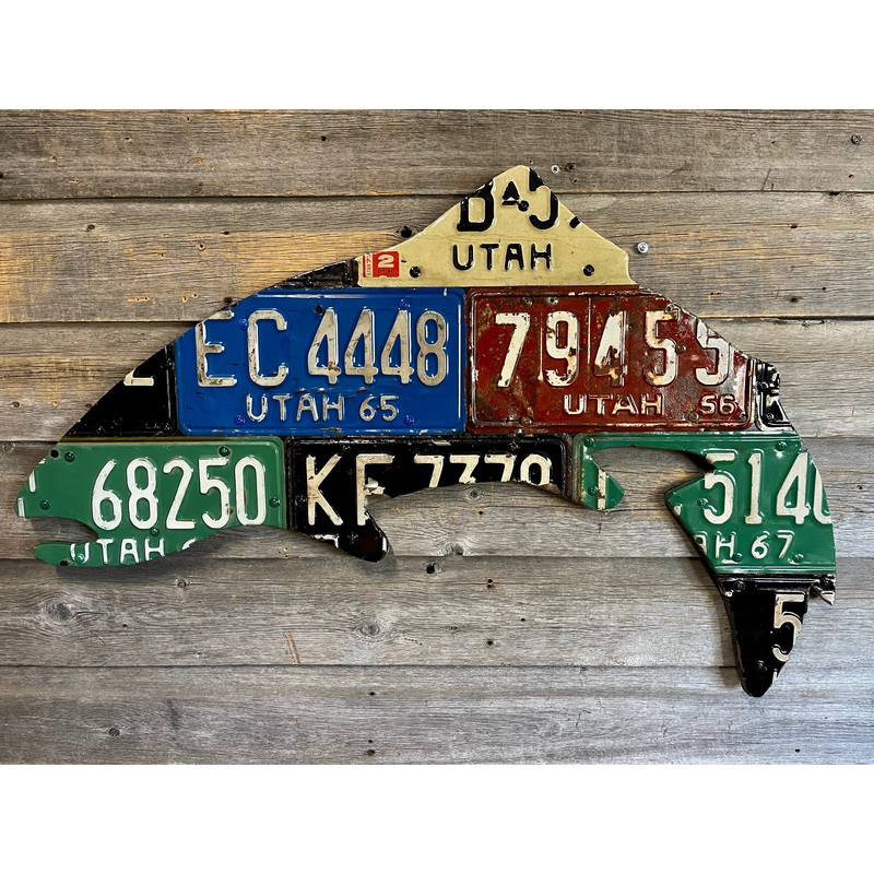 Every license plate art piece is handmade and is unique. Yours will look very similar but will not be exactly the same as the photo example.Please allow 3-4 weeks for creation and delivery. Contact me for rush orders.All trout are 35" x 21"Framing:No-Frame