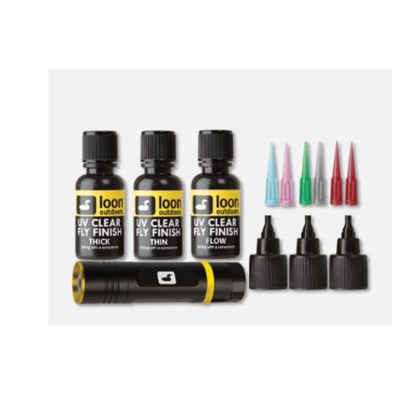 With everything a tyer needs to make the move from traditional cements to UV Cure, the UV Fly Tying Kit includes UV Clear Fly Finish Thick, Thin and the brand new, ultra-thin Flow, and a UV Bench Light.Includes UV Clear Fly Finish Thick, Thin and FlowBuild