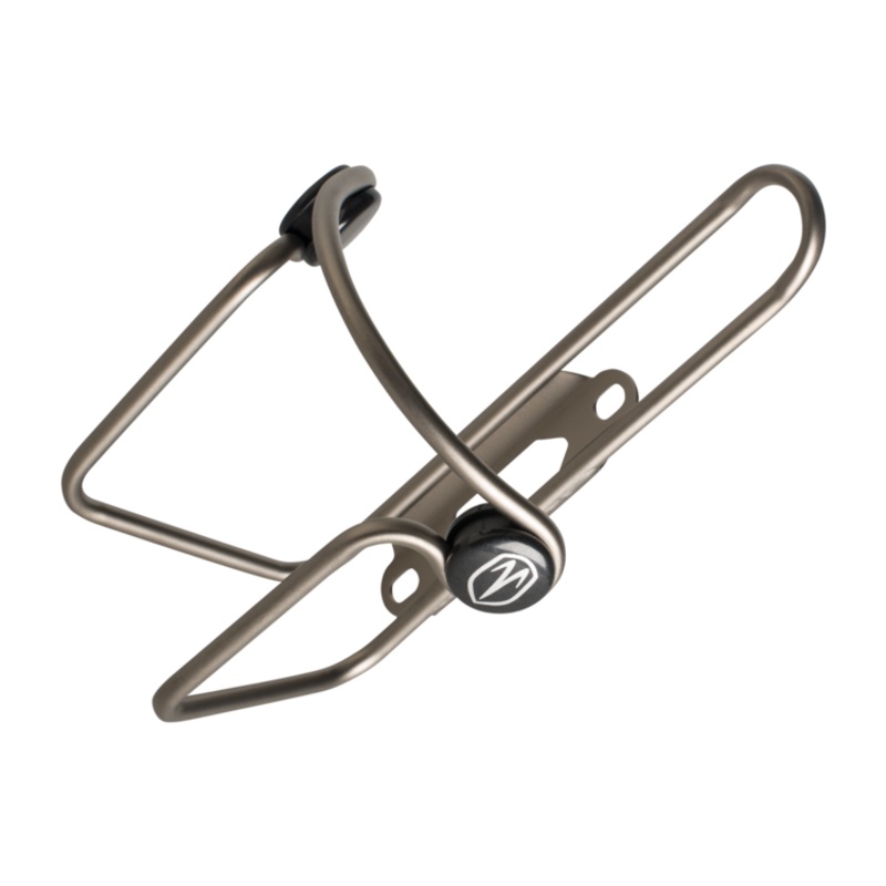 Titanium Bottle Cage - Light and secureEntirely made of 3Al/2.5V Titanium 5mm tube, in Aerospace-grade quality, Provided with non-slip side buttons for a surer grip on the bottle. This sandblasted bottle cage weighs only 55 grams and is suitable for bottle