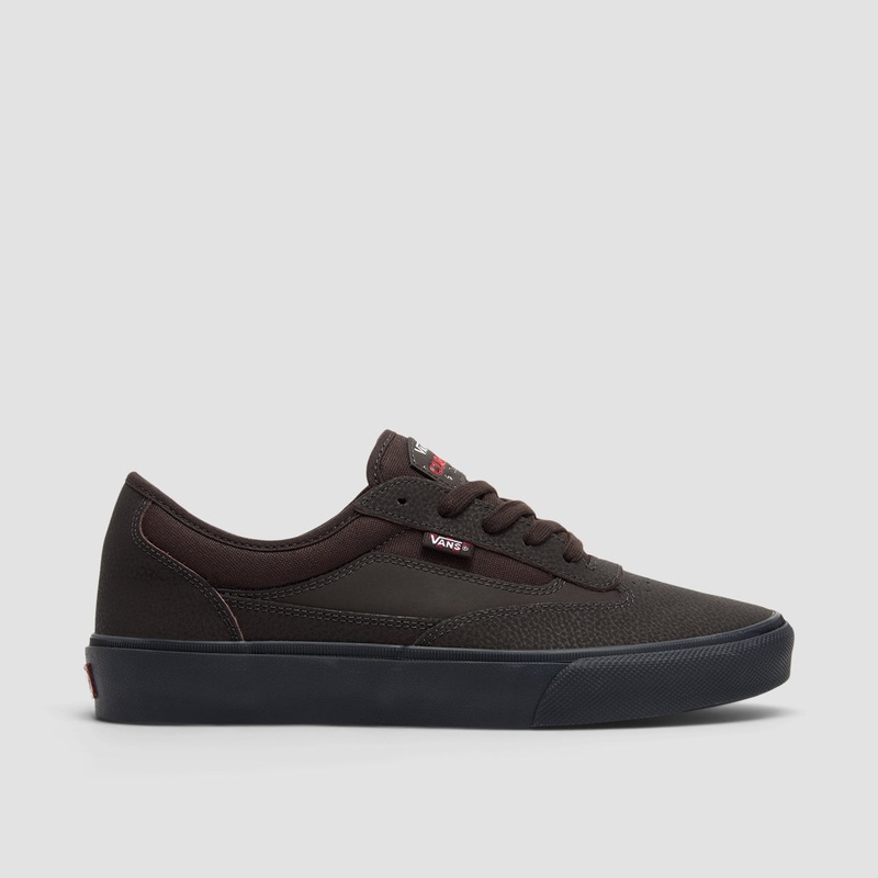 Vans Skate Curren Caples Shoes in Dark Brown. Featuring leather and canvas upper with perforated toe box. They include padded tongue for added comfort and leather tongue tab for clean finish. The PopCush footbed offers responsive cushioning, while the vulcanised construction enhances boardfeel. multi-tread rubber outsole ensures reliable grip on and off the board.