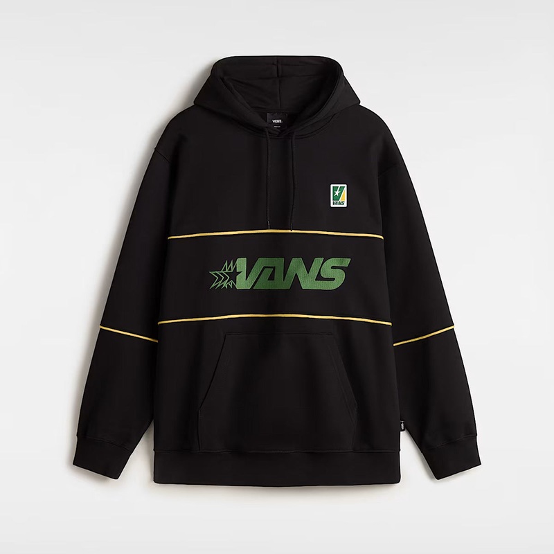 The Star V Pullover Hoodie has long sleeves, a front pouch pocket and the Vans logo on the front. It has paneled details with contrast piping, ribbing at the cuffs and hem and a loose fit.Details and compositionStyle VN000M1KBLKVans logo on frontPaneled de