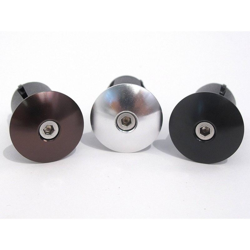 Beautiful bikes deserve beautiful bar plugs! These expanding bar plugs feature a polished aluminum cap. They lock-in and are easy to install and remove.Available in silver, brown, and black.Sold as a pair. Fits 23.8 handlebars only.SKU# VO-GR-0021-SIL, VO-