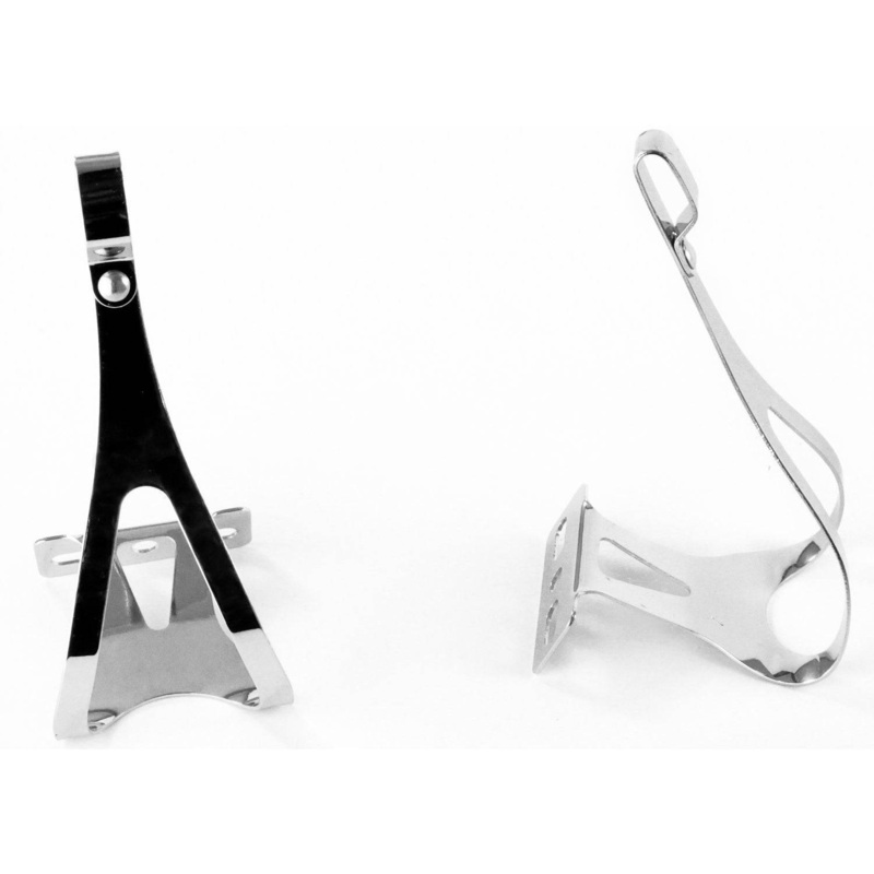 A good quality toe clip and strap are ubiquitous on any classic and vintage bike. These are made from stainless steel and are available in two reach sizes (distance they stick out from the pedal): Medium, 58mm, and Large, 64mmMounting hardware included.SKU