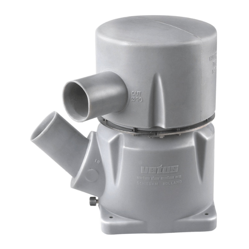 This type of waterlock is designed for modern high-performance boats with one or two large engines which have little space to spare in the engine room. The outlet connection at the top can rotate through 360 and the inlet connection is at an angle of 45 upward. Type MG can only be installed in water injected exhaust systems. Its body is entirely made of synthetic materials, therefore not susceptible to corrosion or galvanic action.