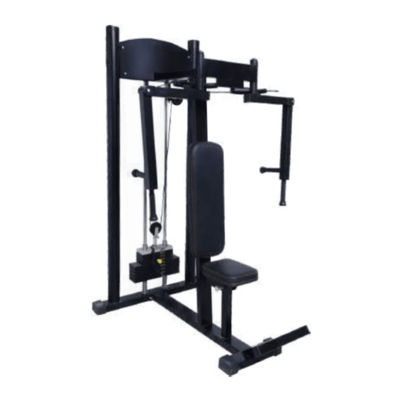 Dual Motion MachineWorkout: Pec-Dec (Chest) and Rear Deltoids (Shoulders)Dimension (LxWxH) = 114*117*204 cmsFrame built from 48mm x 96mm x 2.5mm rectangular MS tubesPillars: 75mm diameter round MS tubesAesthetically designed convers made of MS sheet to cov