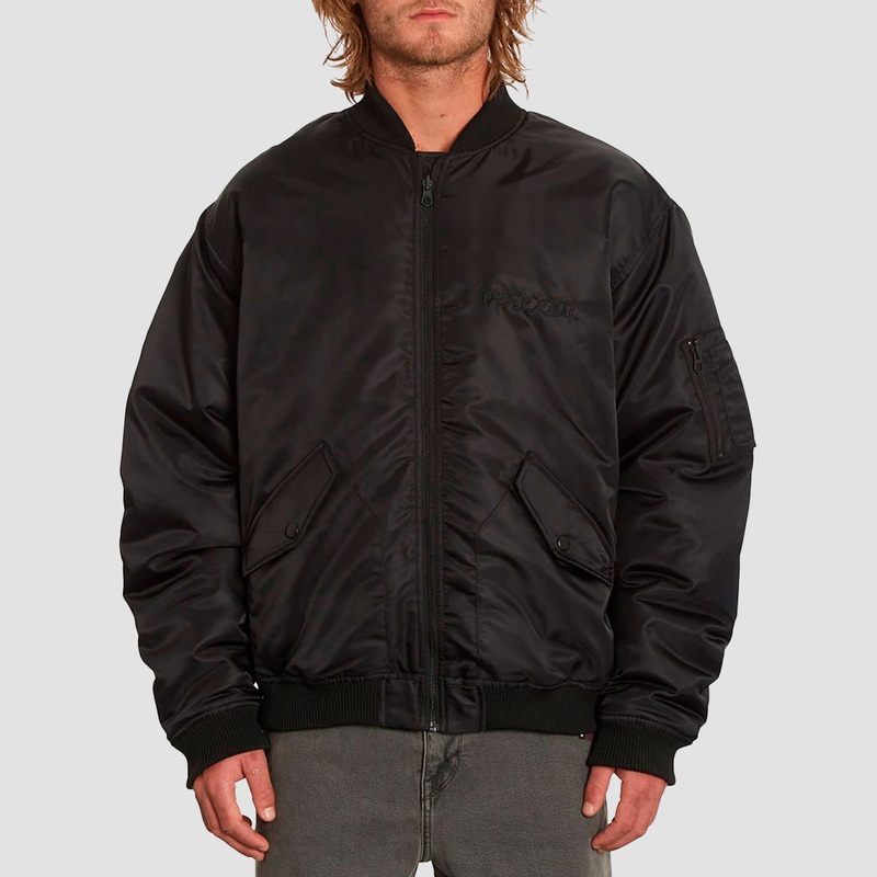 Men's waist length bomber jacket Boxy fit Water resistant : 600 mm DWR finish Zip front closure Rib at collar, sleeves and bottom hem Inside pocket Zippered sleeve pocket Volcom embroiderie at chest Length for size Medium (from shoulder to bottom) : 28" (7