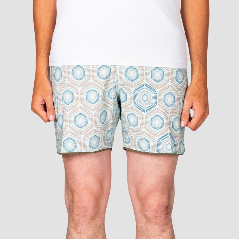 The Sun Medallion Stoney boardshort answers the call this year with its perfect length 18" outseam and 4-way stretch. A singer cinch fly makes taking them off and on a breeze, while the back flap pocket makes this navy print short a keeper for many seasons