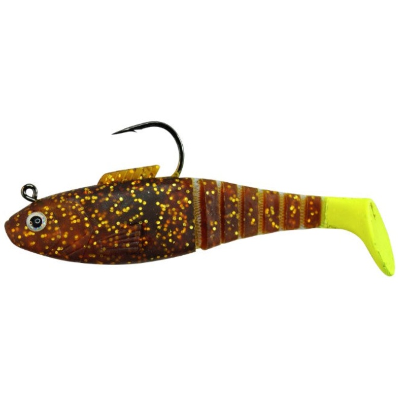 CAUTION: DO NOT STORE WITH OTHER PLASTICS.The Vudu Shad Made from "TOUGH AS HELL" TPE. The serrated tail articulates, creating a life like swimming action and the boot tail adds lift and thump to the lure. The tail section is constructed with a durable mes