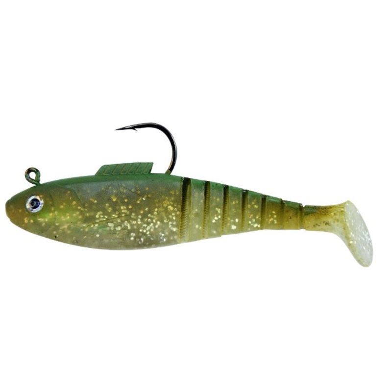 CAUTION: DO NOT STORE WITH OTHER PLASTICS.The Vudu Shad Made from "TOUGH AS HELL" TPE. The serrated tail articulates, creating a life like swimming action and the boot tail adds lift and thump to the lure. The tail section is constructed with a durable mes