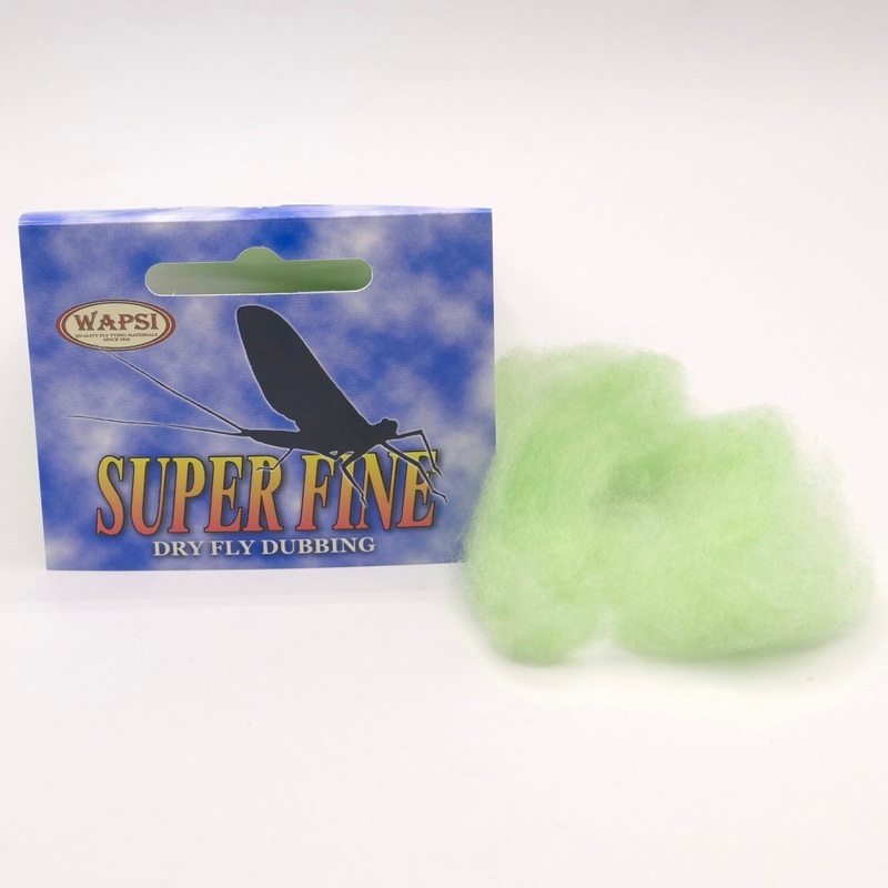 Wapsi Super Fine Dubbing is a permanently waterproofed 1.2 denier, 1.5 staple synthetic material. It makes fantastic tight bodies on dries past size 28. Great hatch matching colors.