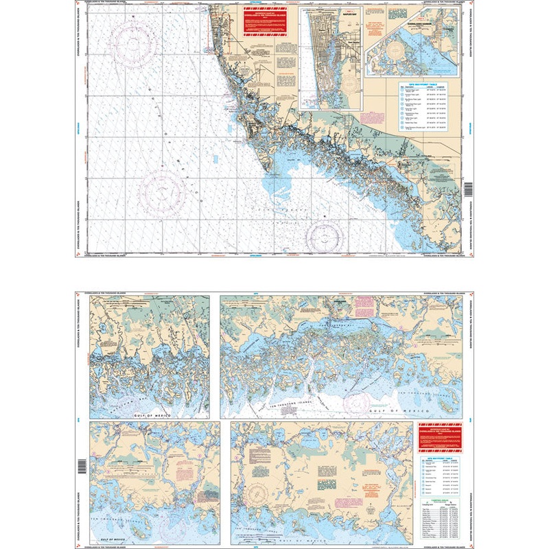 Everglades and Ten Thousand IslandsCoastal Coverage from Naples south, covering Cape Romano Shoals to Chatham Bend and Pavilion Key. Detailed Coverage for Naples and 10,000 Islands to Lostmans River, including the Everglades City and Chokoloskee Area. Comp