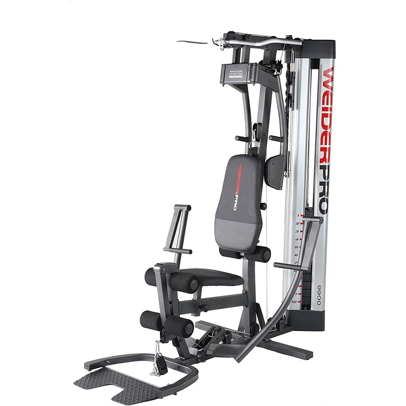 The Weider 9900 multi gym enables you to enjoy complete workout without the need to leave home. This multi gym has a 65kg (143lbs) weight stack and 45kg (99lbs) resistance with the burn bands. It offers you an opportunity to develop all of your major muscle groups using its six muscle-sculpting stations: a chest press, high pulley, low pulley, expandable chest fly, row plate, and a 4-roll leg developer.