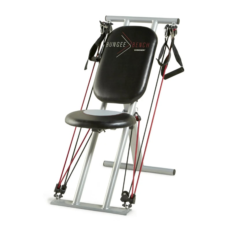 Weider - Bungee Bench The Weider Bungee Bench revolutionizes workouts by integrating resistance bands for a streamlined total body session, eliminating bulky free weights for a space-efficient experience. With options for light, medium, or heavy resistance