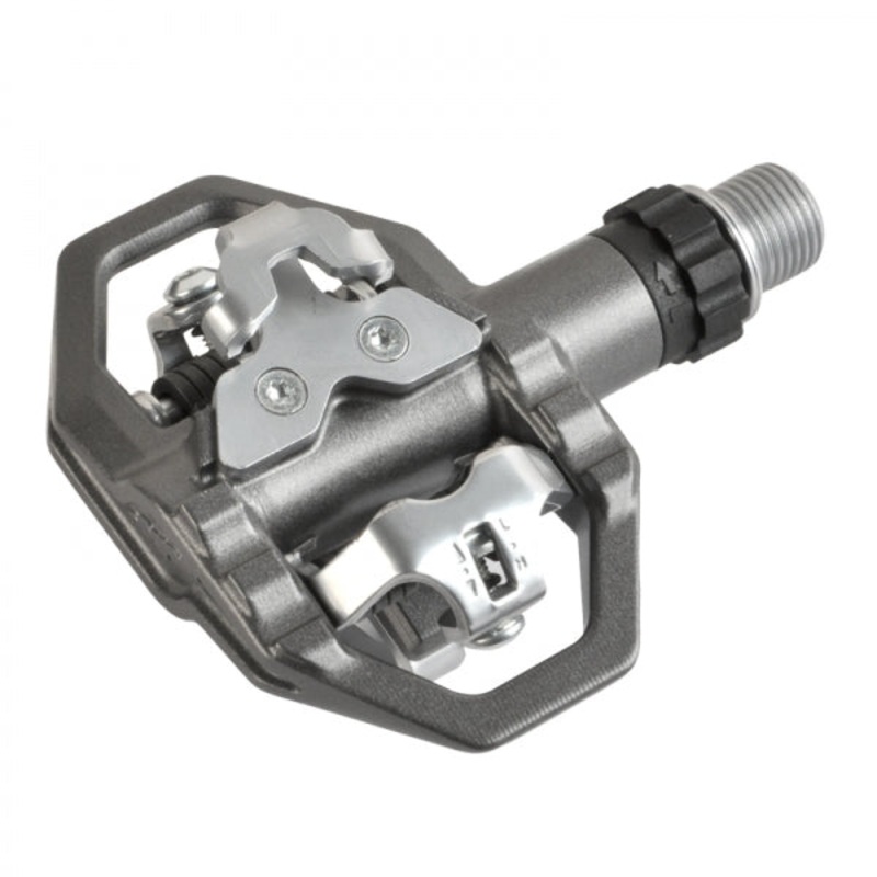 The M279DU Clipless Pedal, SPD from Wellgo is the perfect choice for cyclists looking for a reliable and stable pedal. The reversible cleats allow for a secure engagement and the built-in traction pins offer extra grip for better control when pedaling. The lightweight design makes it easy to install on any bicycle.