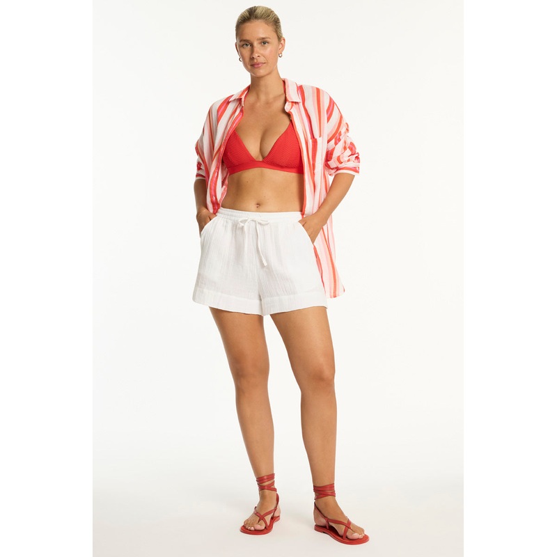 Meet West Coast, crafted from a soft touch cotton fabric, these effortless resort wear separates are perfect for easy styling and mix-and-match versatility.Cheesecloth cotton fabricSoft touchLoose oversized shirtButton throughWide structured cuffsFabric Co