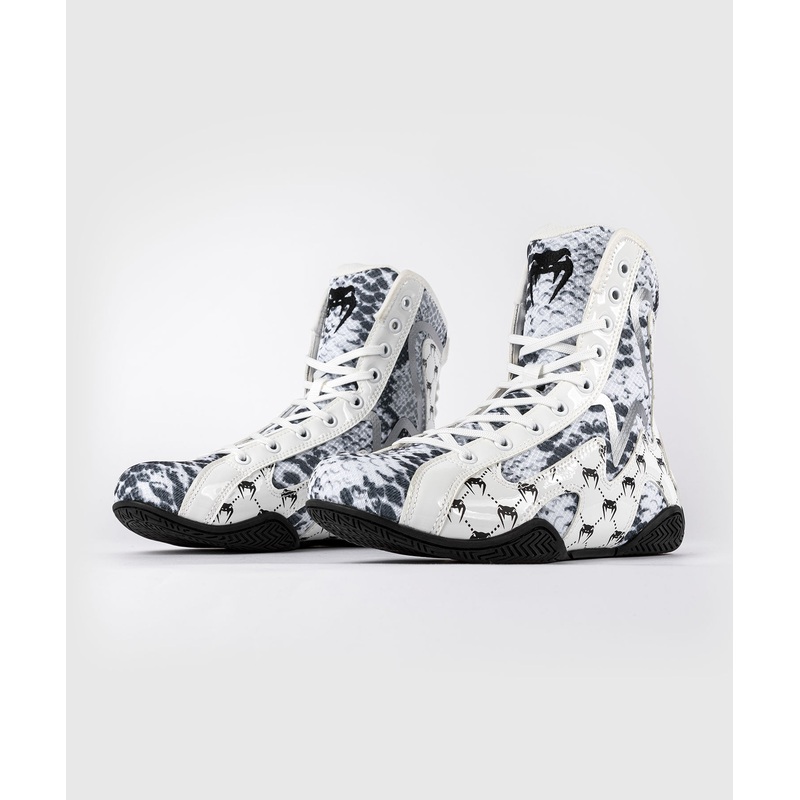 Inspired by the ever-renewing force of the serpent, White Snake is a stunning collection featuring snakeskin print with and black logo detailing.The White Snake Boxing Shoes are based on Venums best selling Elite Evo Monogram model, which was developed alo