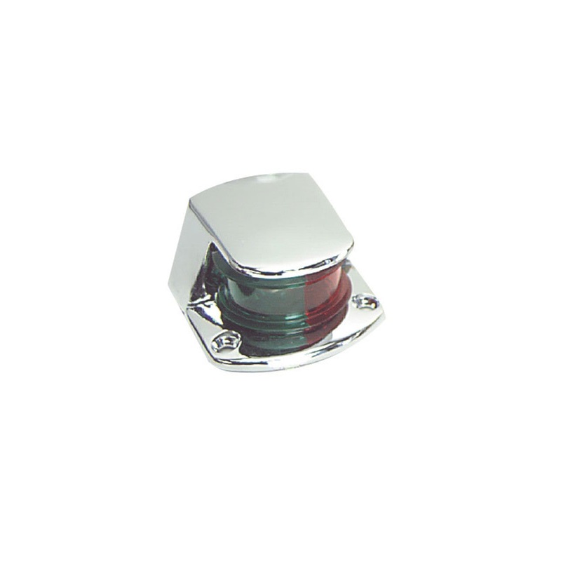 Bi-Color Sidelight C.P. Zamac housing. Red and green lens. Meets ABYC standard A-16. 1-mile visibility for power boats under 12 meters (39.4′). 12V DC lamp included. Pre-drilled for #8 fasteners. Base – 1-5/8″ x 4″.