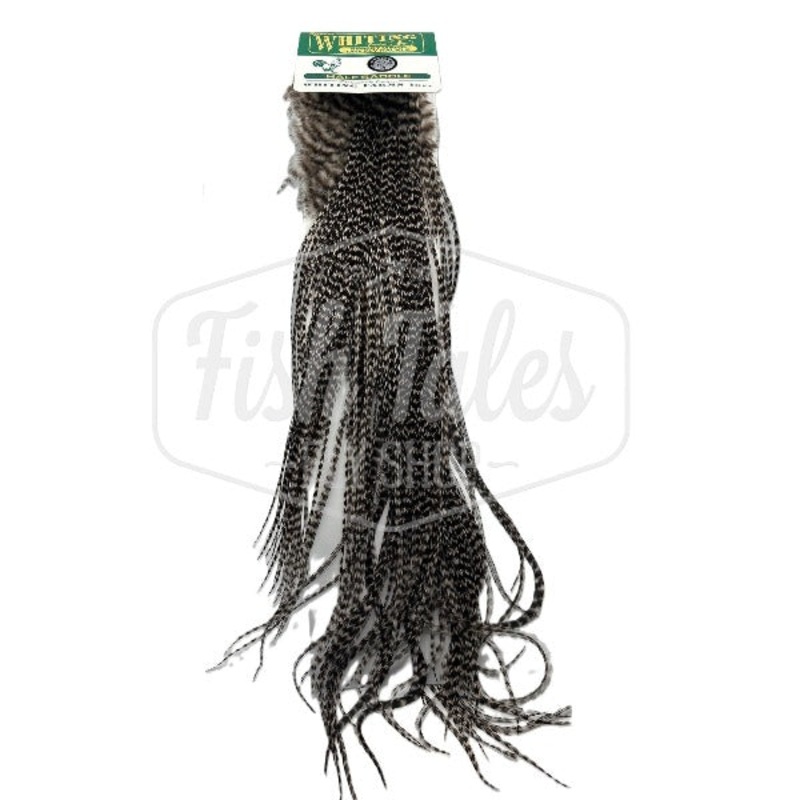 The traditionalists choice! The Whiting Farms Hebert Miner line of hackle offers the best range of natural duns, browns, creams, and badger available to the dry fly tiers of the world. Natural color dry fly hackle with a size range of 10 to 14 on the saddl