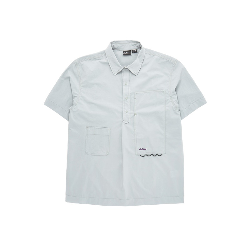 As the name suggests, the Camp Pull Over is an outdoor-ready design. A wide boxy cut, its produced in a soft and lightweight polyester which further offers two-way stretch. The four-button placket front has a pleat beneath to accentuate the wide shape. A l