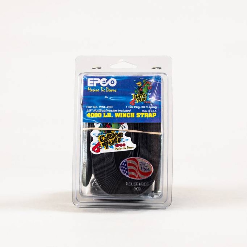 EPCO Winch Strap 20', Super-strong Nylon webbing with a 4,000 pound capacity and includes a heavy duty zinc plated hook. Comes with a sewn loop on one end or cut off so that it can be threaded.