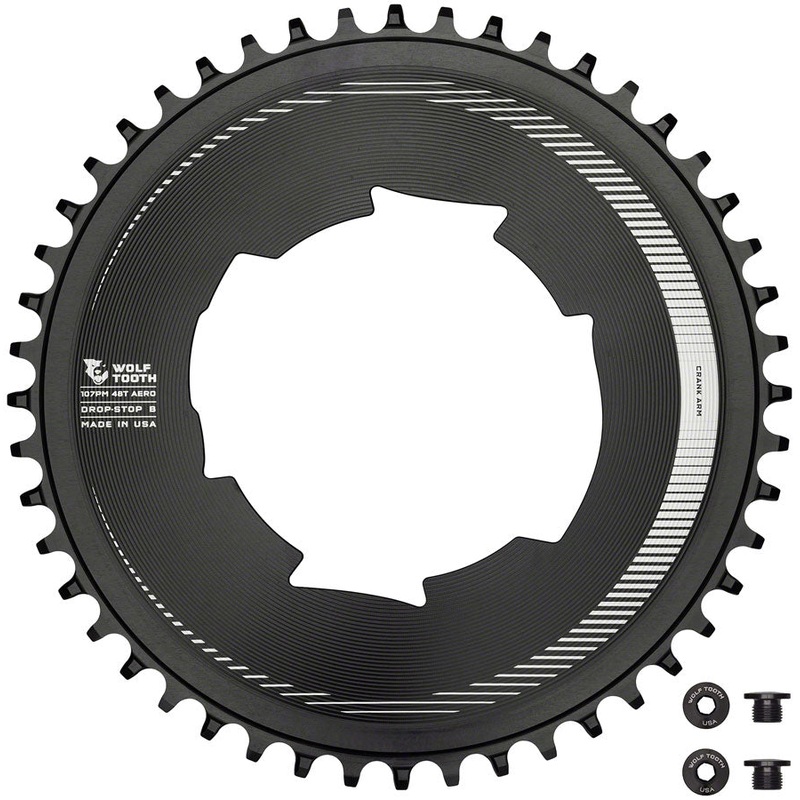Wolf Tooth Aero 107 BCD Chainring - 48t Optimized for SRAM Eagle and Flaptop Chains Drop-Stop B Black. Designed for gravel and road racing and for those looking to optimize each detail in pursuit of speed Wolf Tooth Aero Chainrings are strong lightweight a