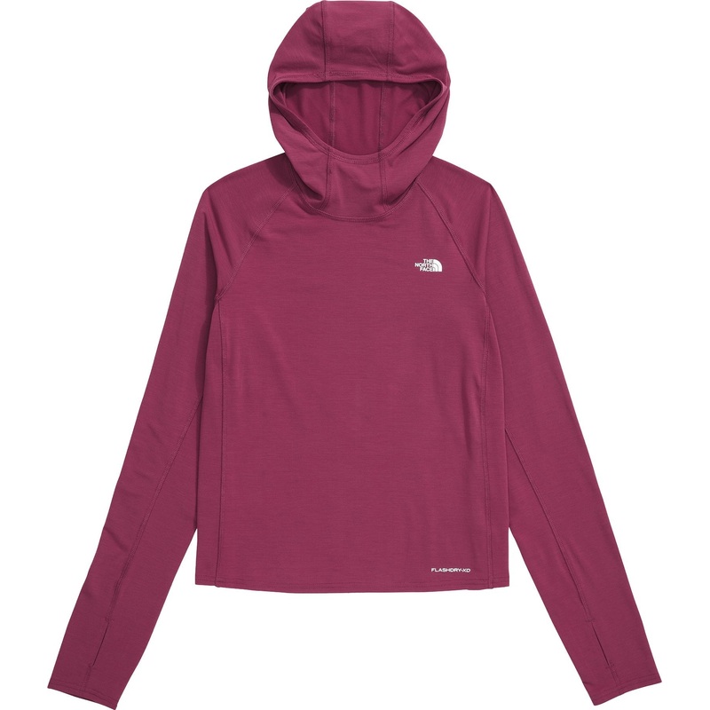 Stay safer and more comfortable on any sunny-day adventure in The North Face Adventure Sun Long-Sleeve Hoodie for Ladies! UPF 40 sun protection shades your skin from harmful UV rays, allowing you to enjoy plenty of sunshine worry-free. High-performance 92% recycled polyester/8% elastane fabric with FlashDry-XD technology wicks away moisture to keep you dry and comfortable. Plus, the fabric resists snags for increased durability. This sun shirt also features a 3-piece hood, self-fabric tape on the inner-back collar, raglan sleeves, thumbholes, and a regular fit.