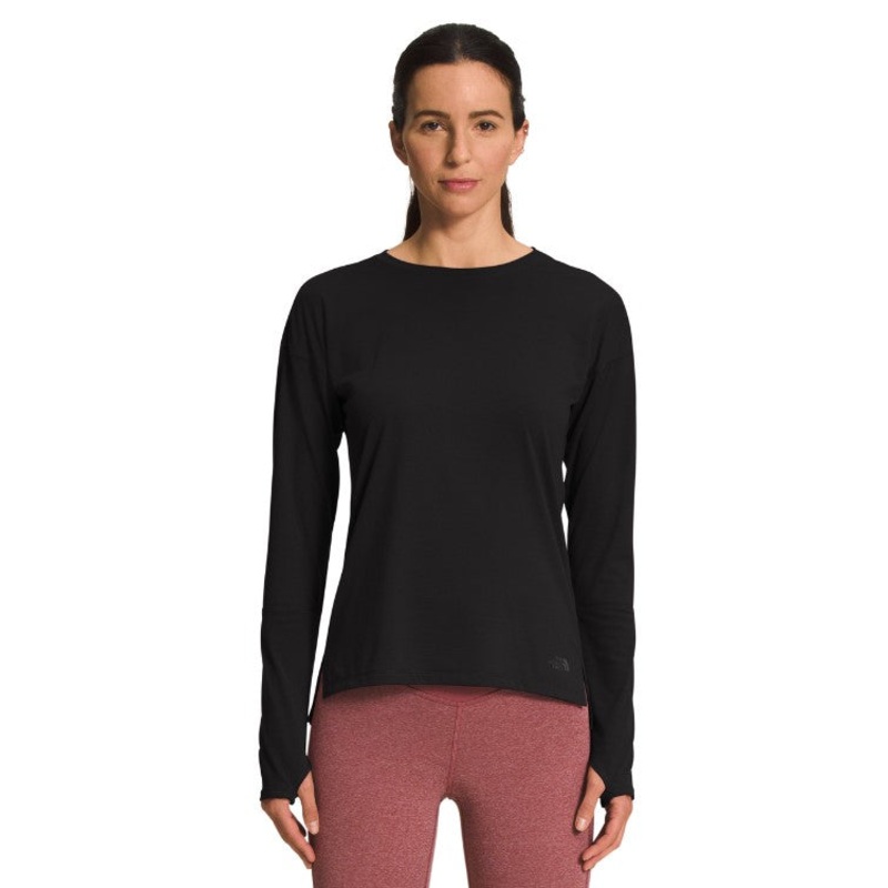 The ultra-soft feel of the Womens Dawndream Long-Sleeve means you can explore further in comfort. Moisture-wicking FlashDry, a drop-tail hem, and incorporated thumbholes make for a versatile year-round layer. _________________ Standard fit Sustainably cons