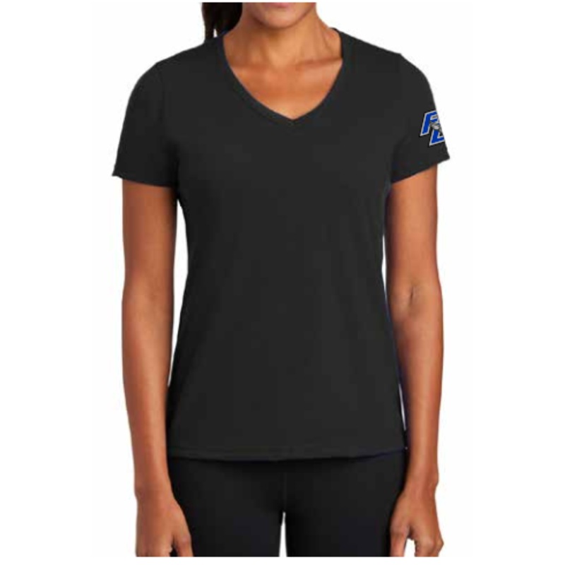 V-neck women's t-shirt with a soft cotton-hand feel joins moisture-wicking technology for unbeatable comfort and performance. _____________________________________________________________4.5-ounce, 65/35 poly/cotton blendSide seamed with a contoured body f