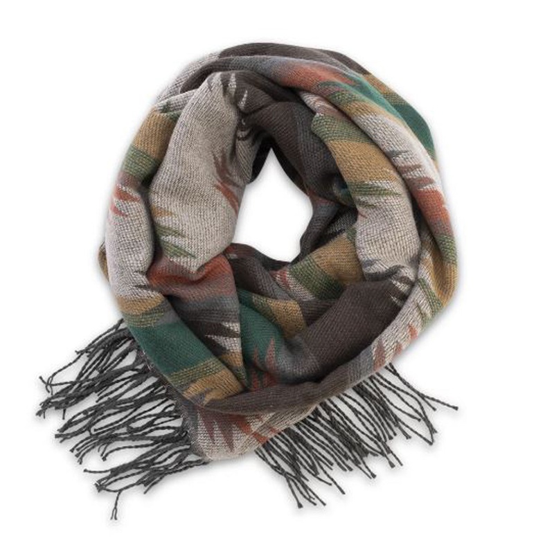 Soft, lightweight fabric with multicolor patternFringed ends for a playful lookAcrylic65 cm x 175 cm