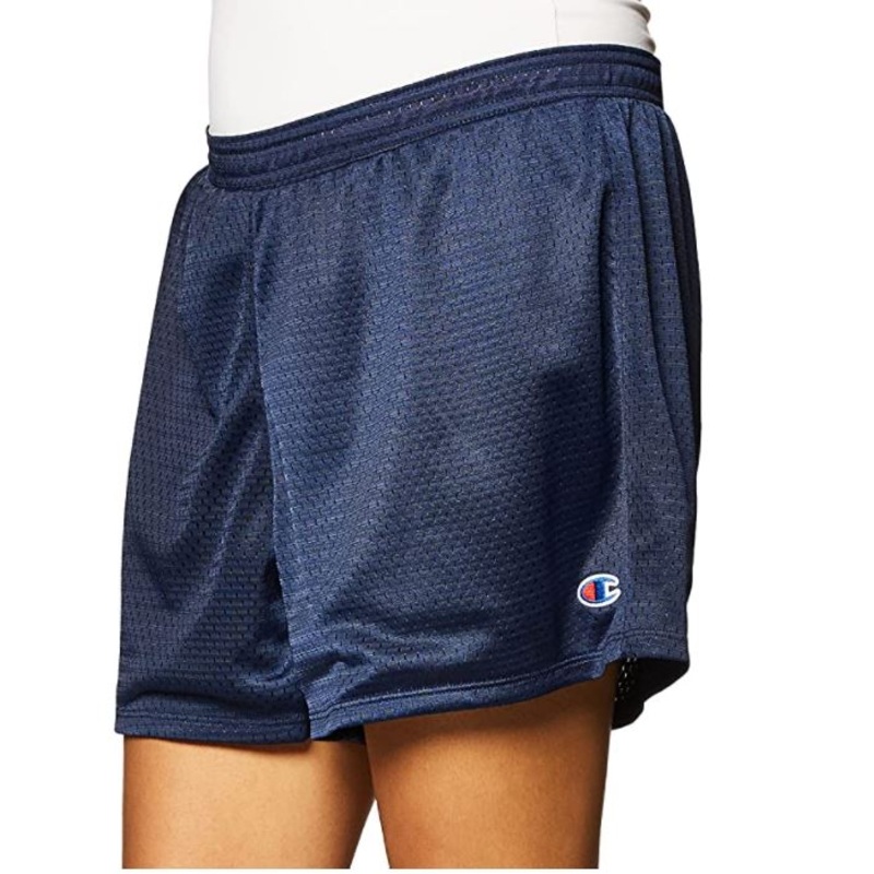 Champion Women's Mesh Shorts __________________________________________________________ Foldover elastic waistband with Champion script logo Breathable mesh fabric helps keep you cool Inner lining helps prevent rubbing and chafing 4" inseam _______________