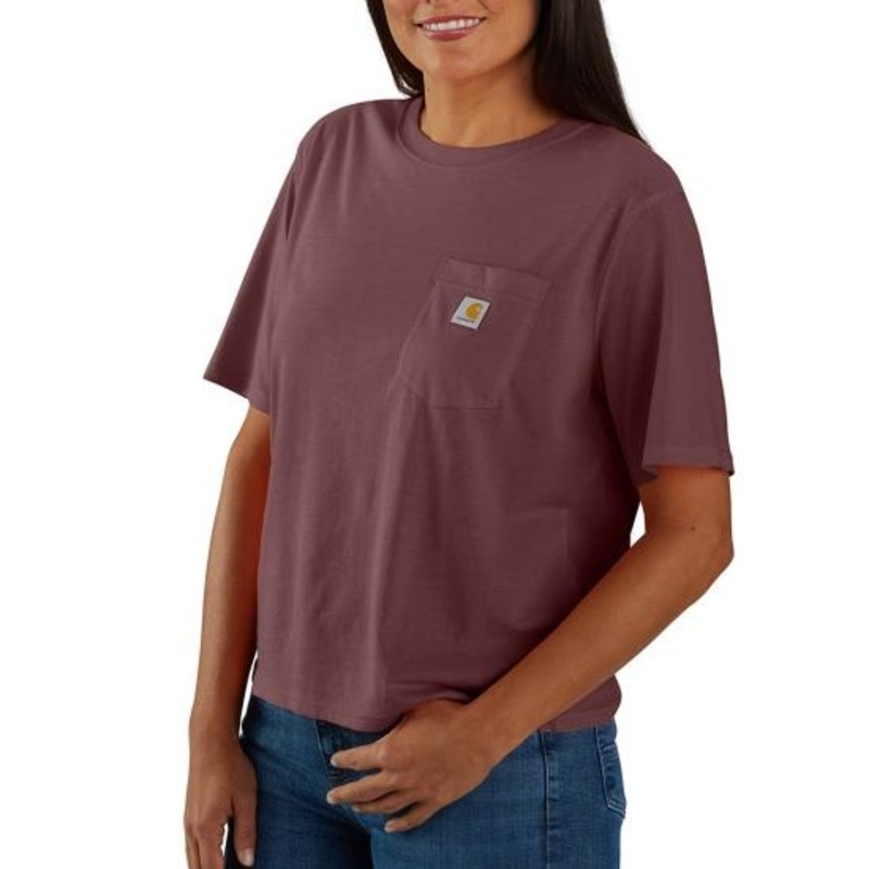 Settle into the workday or work though your list on the weekend. More than a basic t-shirt, this women's Carhartt pocket tee is an essential layer. Soft and durable, the cotton blend stands up to routine wear, and it's cut for a loose fit with a relaxed fe