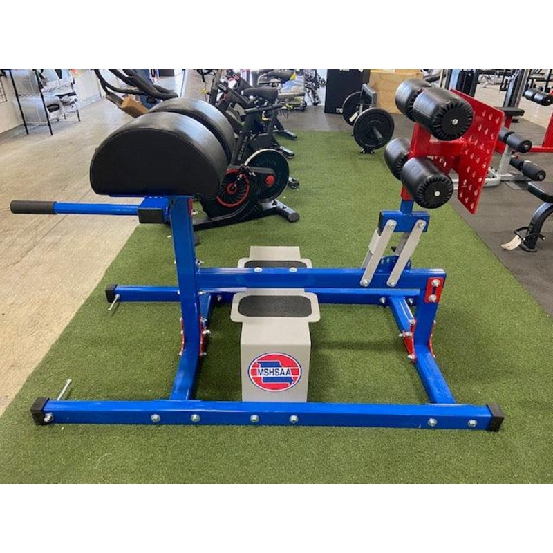 Wright Adjustable GHD- Vertical Adjustments in 25" from center of the pad to 40" to center of the pad in 2" increments.- Extra large pads for comfort- Heavy-Duty steel construction- Wide base to eliminate tipping-Band pegs to add resistance-Foot platform f