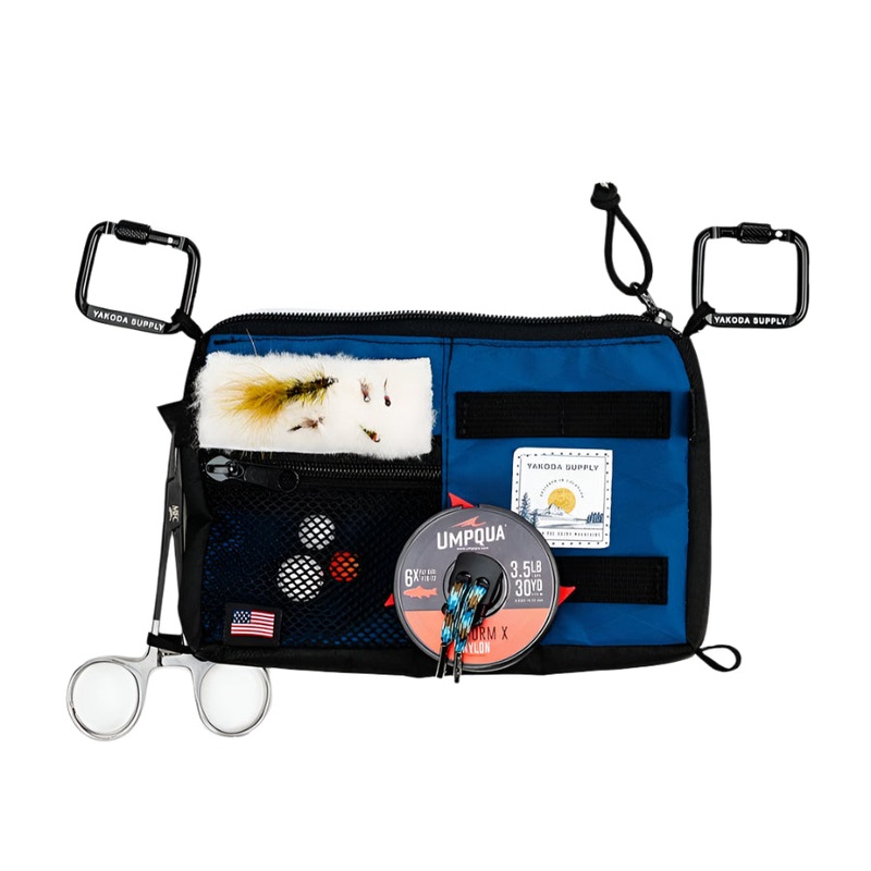 The Yakoda Utility Pack is a versatile storage pouch that easily adapts to how you’re fishing. It can beconnected to the straps on your waders and worn on the chest using the included Yakoda carabiners, attached to a belt through the webbing loops on the back for use as a minimalist wet wading setup, and fastened to the outside of your pack during the hike in.