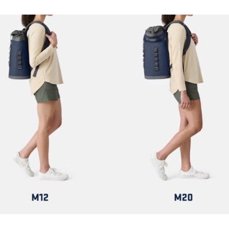 We recommend pairing the M12 with a Medium YETI Thin Ice, and the M20 with the Large for better cooling power that takes up less space.